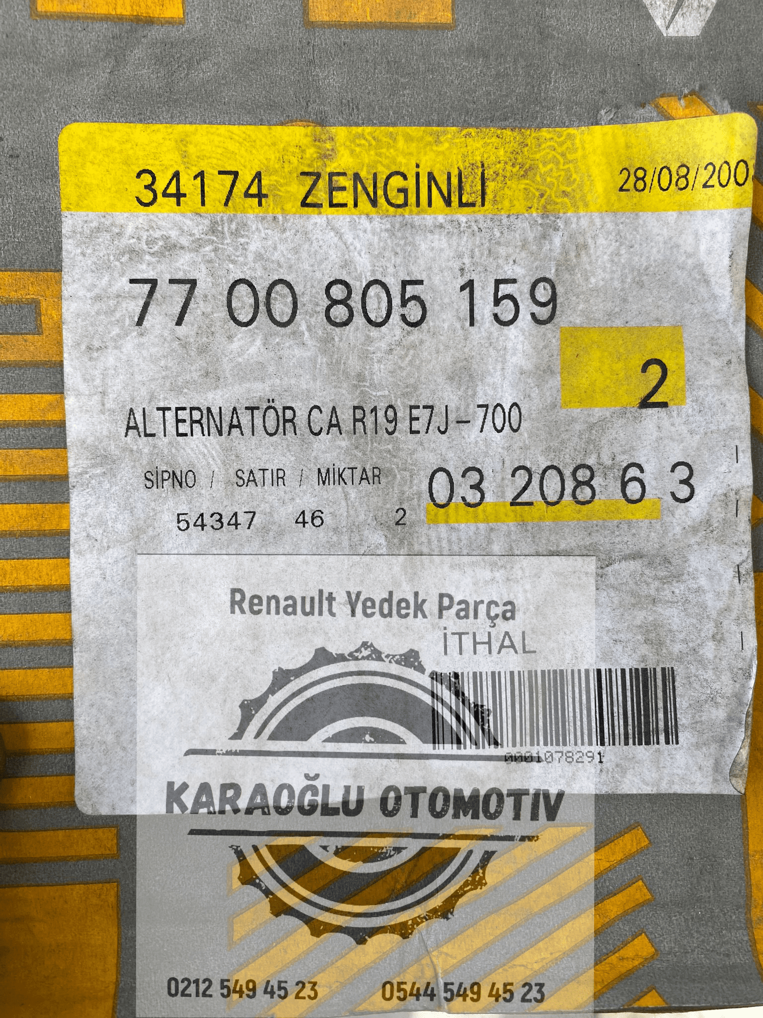 7700805159 Renault R19 Clio 1.2 1.4 R21 Manager Alternatör Dinamo 12V 90 A